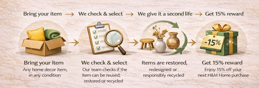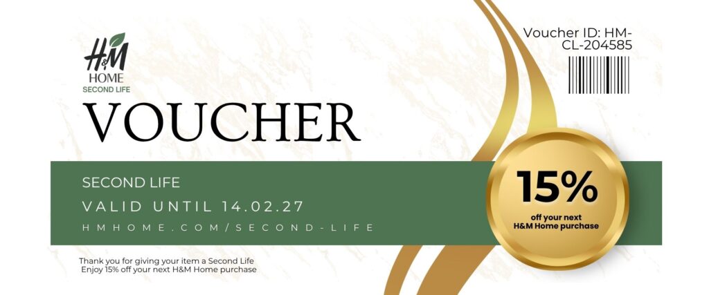 Enjoy 15% off your next H&M Home purchase, our thank you for giving your item a second life.